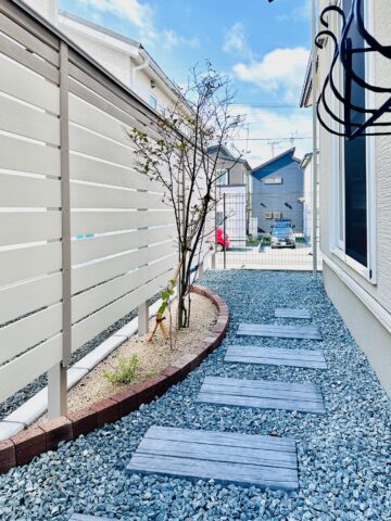 砂利とステップをブラウン系にすると、より可愛らしさがアップします。