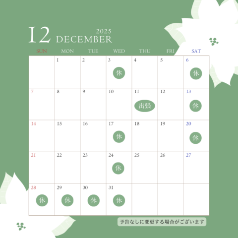 12月の営業日