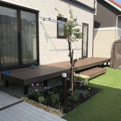 お庭に敷いた人工芝は、娘さんとお友達の人気の場所になったそう。