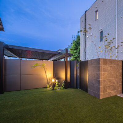 プライベート空間である庭は、外からの視線を遮る高さの塀が設けられており、家族が安心してくつろげるようにしています。また、塀には縦格子を入れたことで、適度な抜け感を演出しつつ、外部からの視線をコントロールしています。