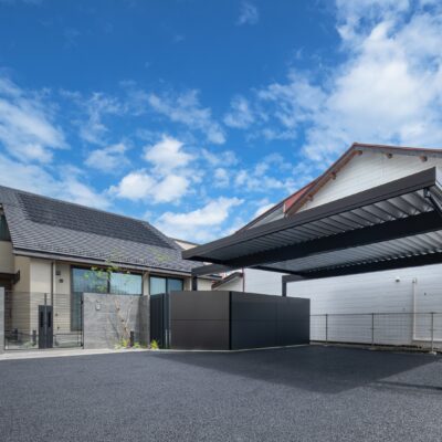 こちらの物件は、交通量の多い道路沿いに位置しているため、敷地内での車の切り返しスペースの確保が課題でした。そこで、車の出入りをスムーズにするため、カーポートの2本の柱を梁延長で広く取り、駐車スペースを最大限に確保しました。これにより、日々の車の出し入れの不安を解消できると思います。