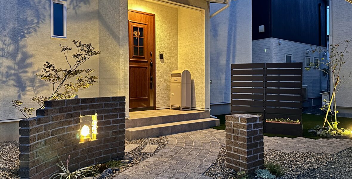 門柱|アプローチ|駐車場|表札|インターロッキング|ライト|トータルエクステリア