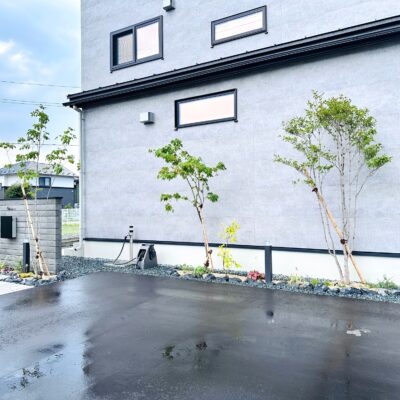 ご予算の都合か、工務店にただ勧められてなのかわかりませんが「土間とカーポートがあるだけの庭」