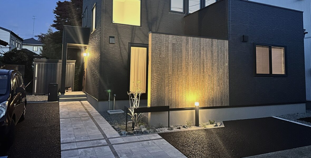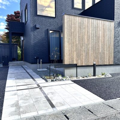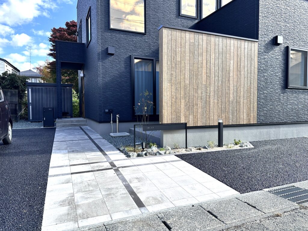 門柱|アプローチ|駐車場|表札|インターロッキング|ライト|舗装|アスファルト|トータルエクステリア